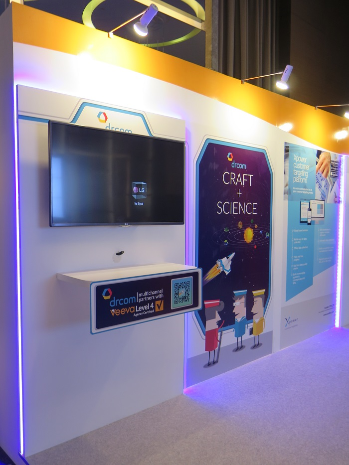 With 42" LCD TV on each booth for product presentation.