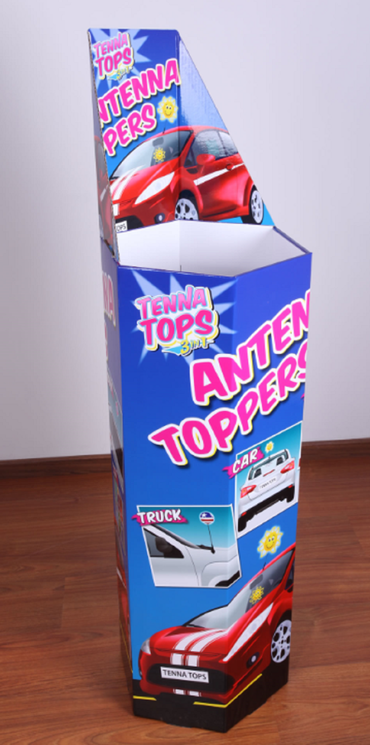 Portable display stands that help you sell you products. Made of quality fluted board with offset or inkjet print and packed flat. It can be assembled up within 5 minutes.