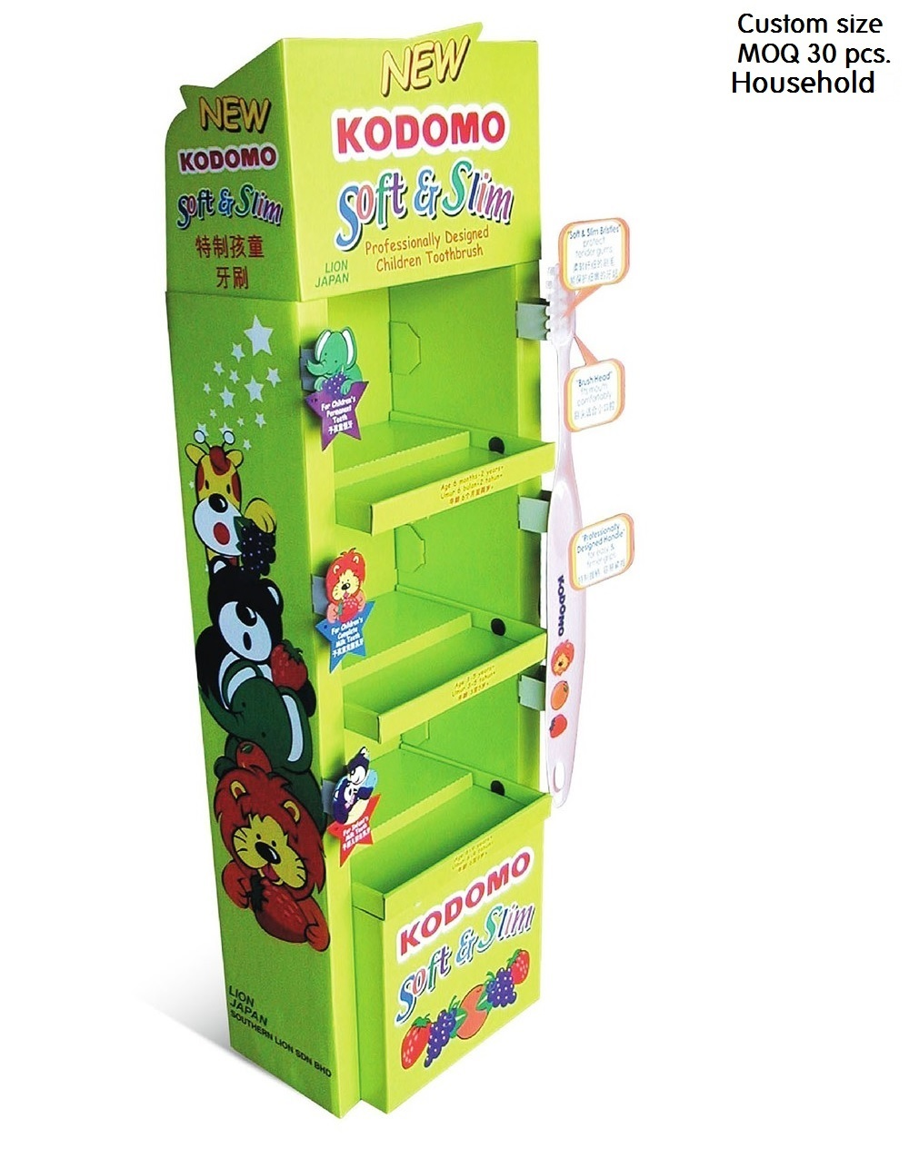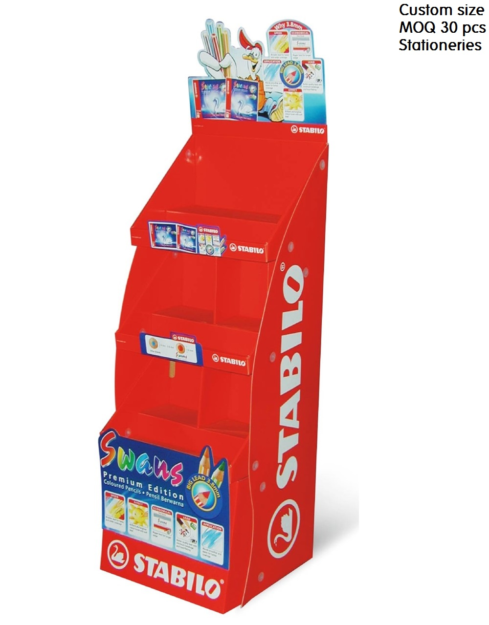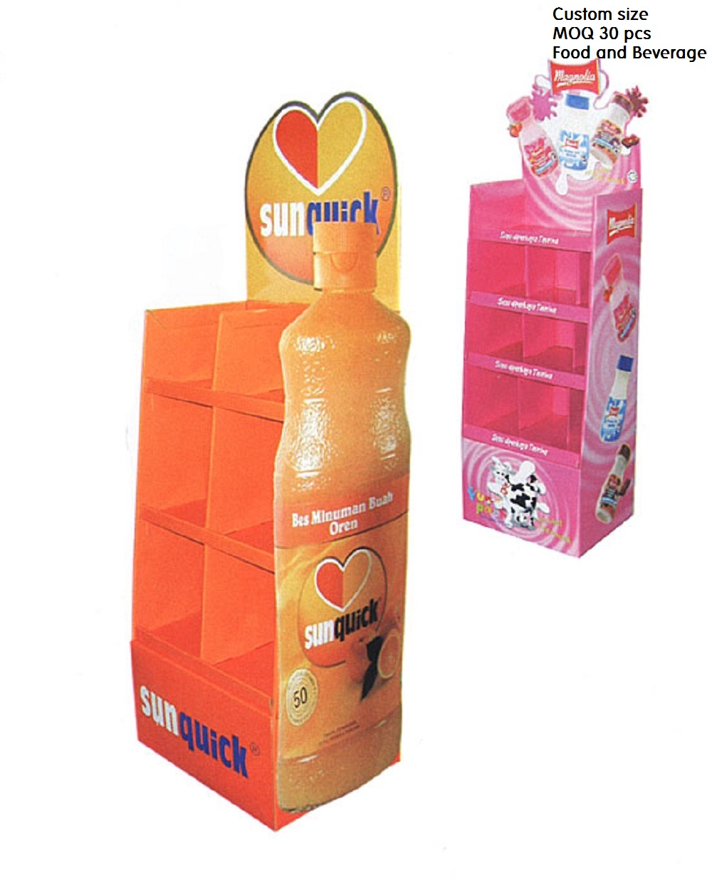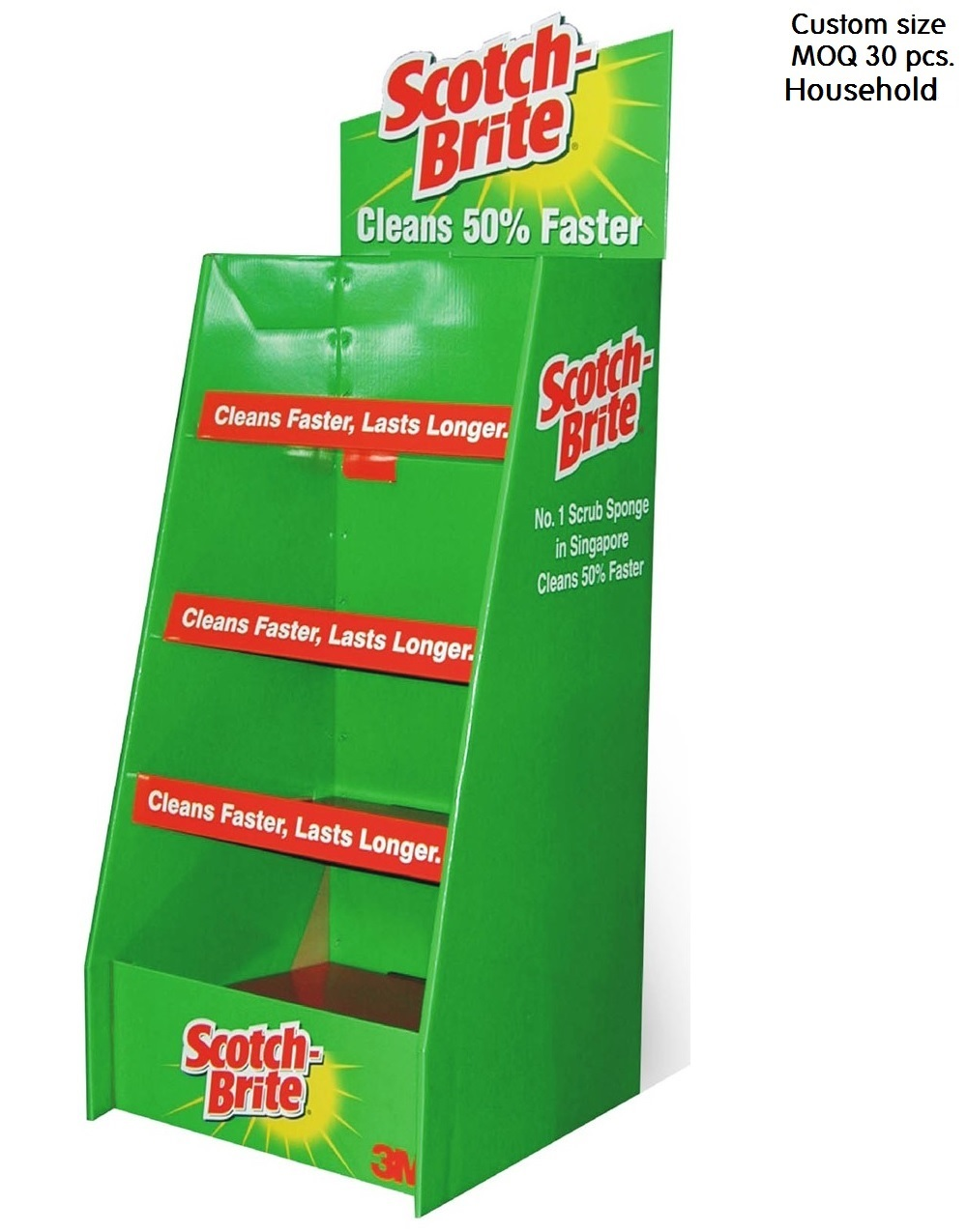 Portable display stands that help you sell you products. Made of quality fluted board with offset or inkjet print and packed flat. It can be assembled up within 5 minutes.