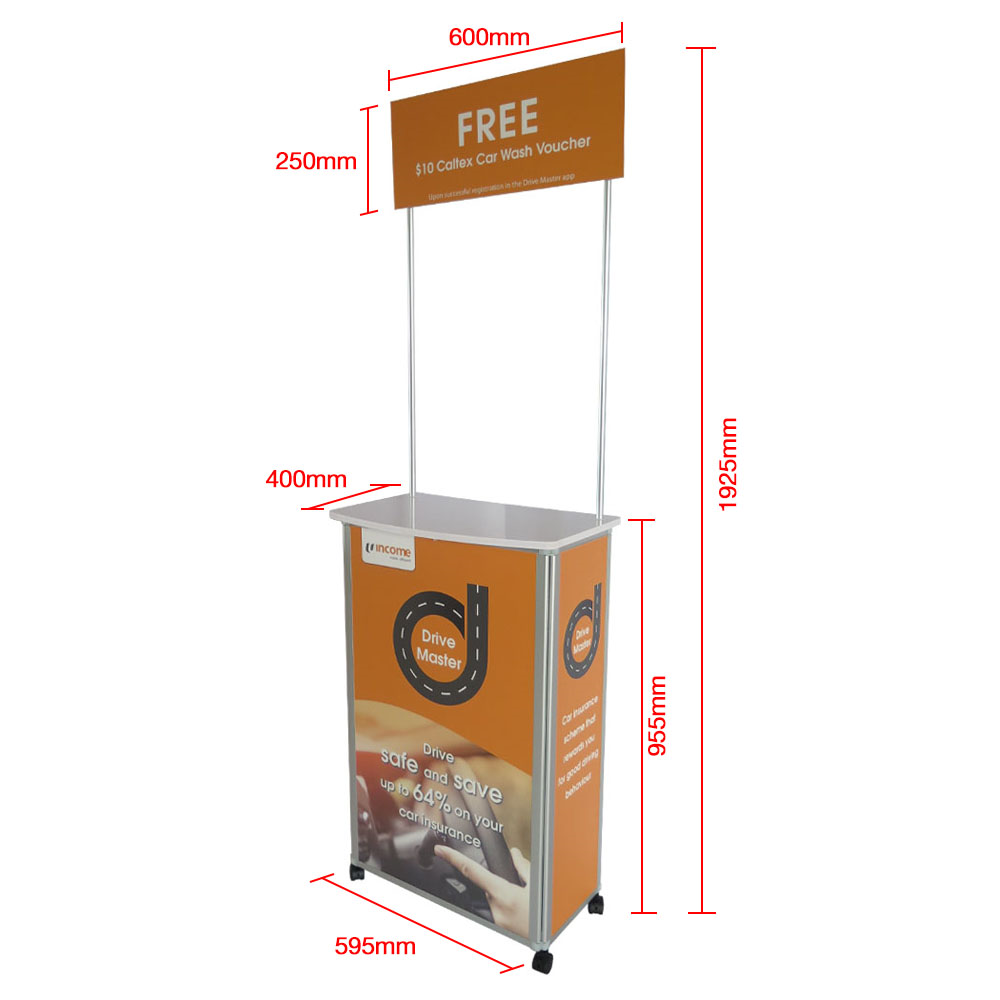 This mobile counter is ideal for high traffic areas such as supermarkets, exhibitions and event road shows.