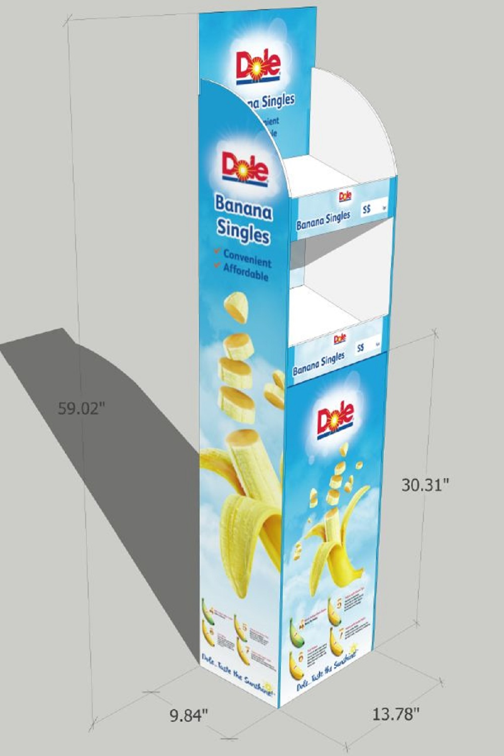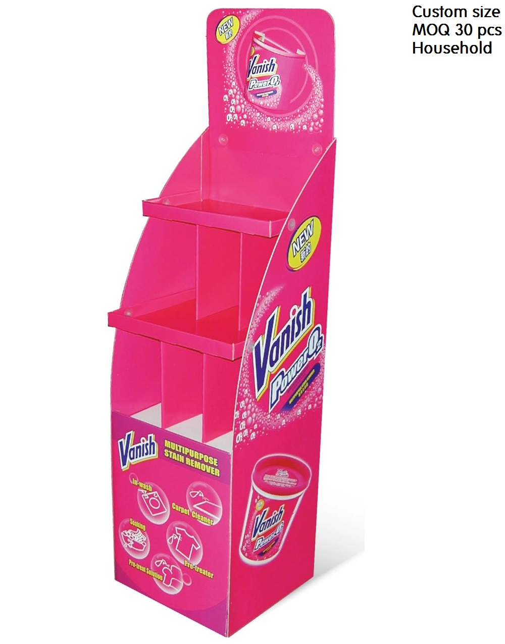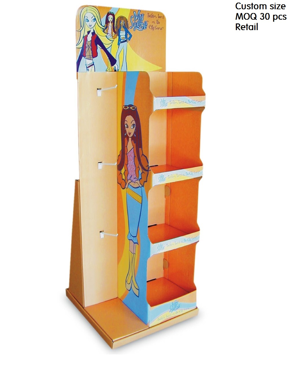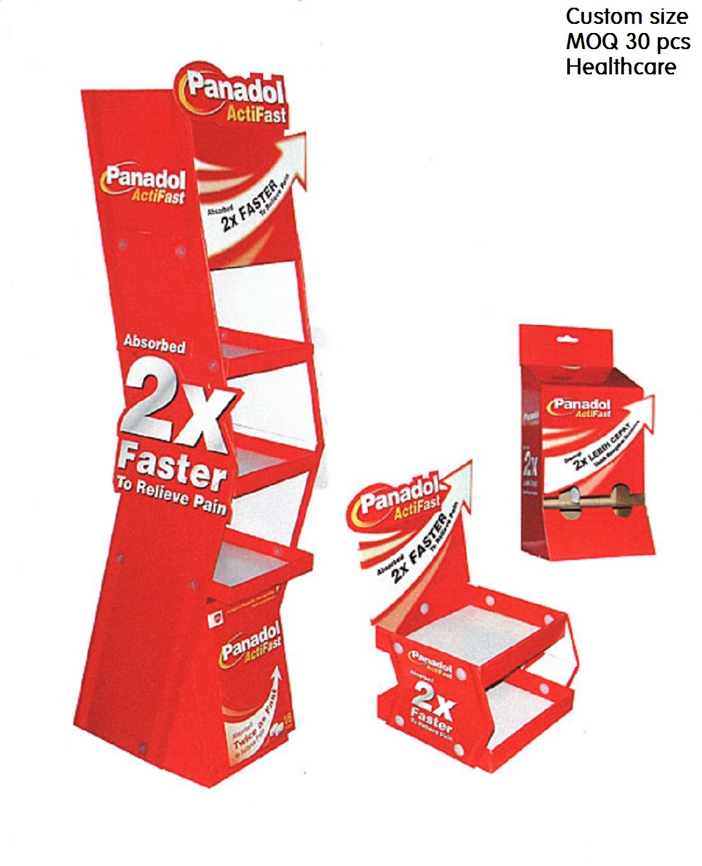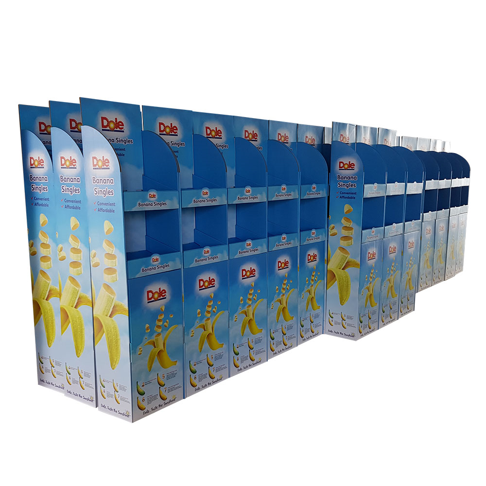 Portable display stands that help you sell you products. Made of quality fluted board with offset or inkjet print and packed flat. It can be assembled up within 5 minutes.