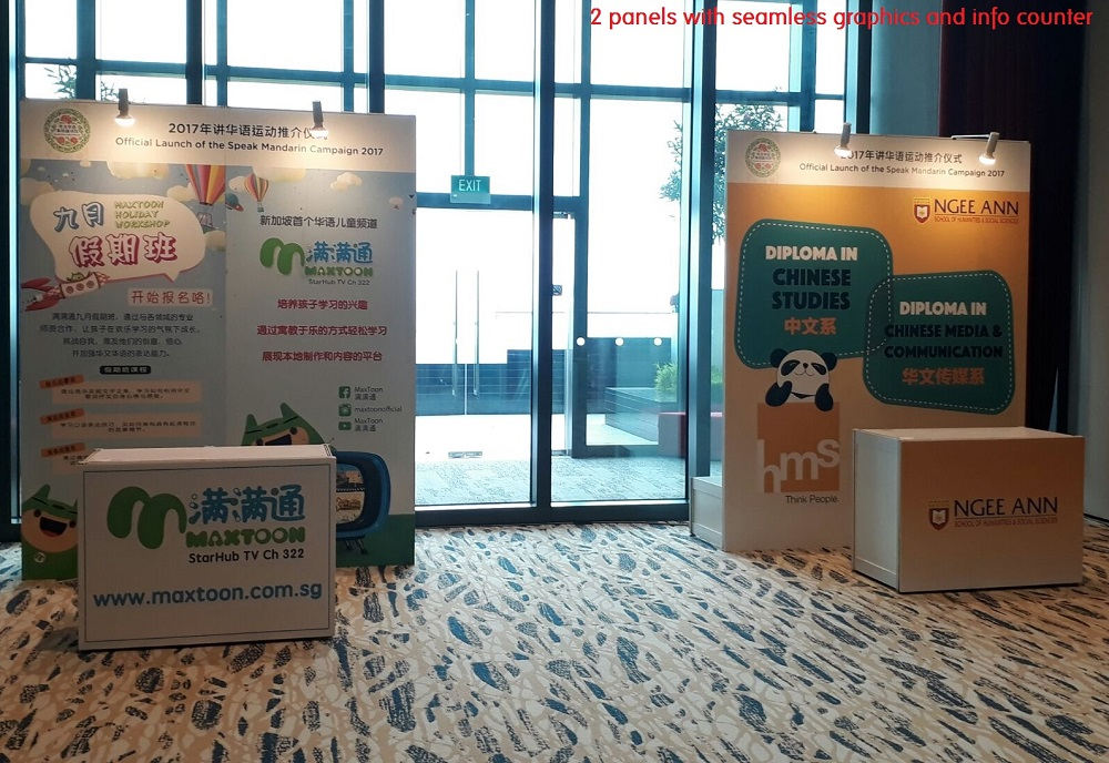 • Full service – we handle set up, teardown of panels, lights, power sockets, poster printings, table and chair rental etc, You don’t have to bother with the heavy liftings.