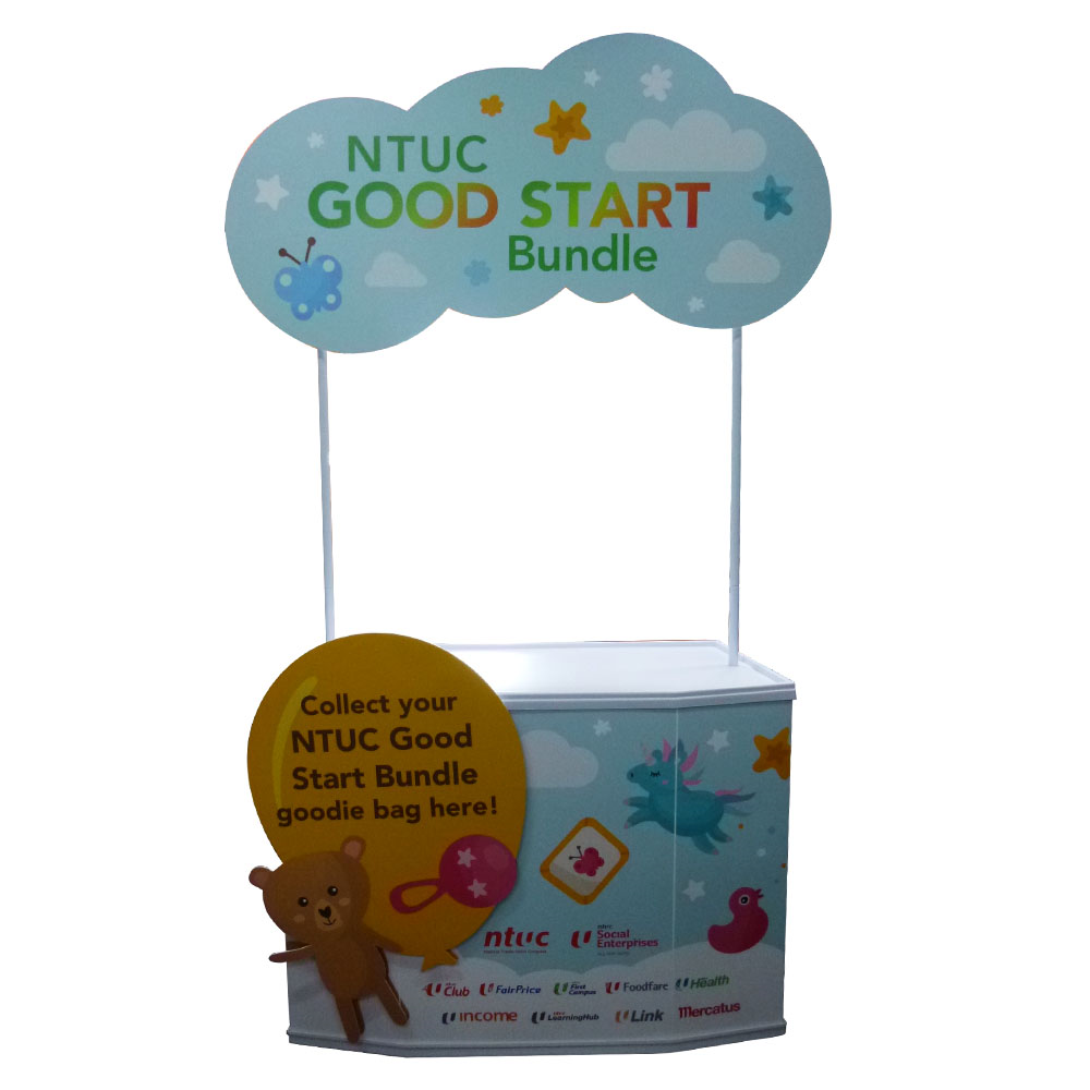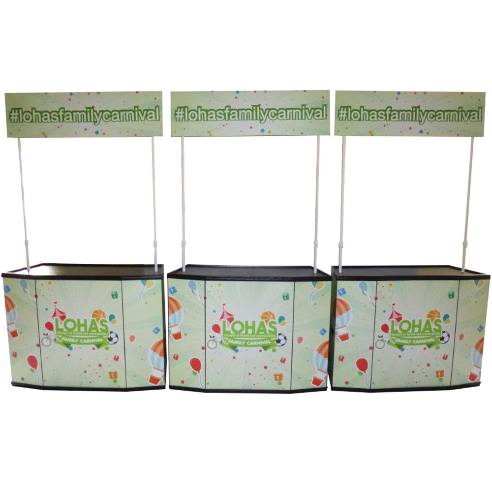 A 4ft. wide premium quality collapsible counter for sampling and product promotions.